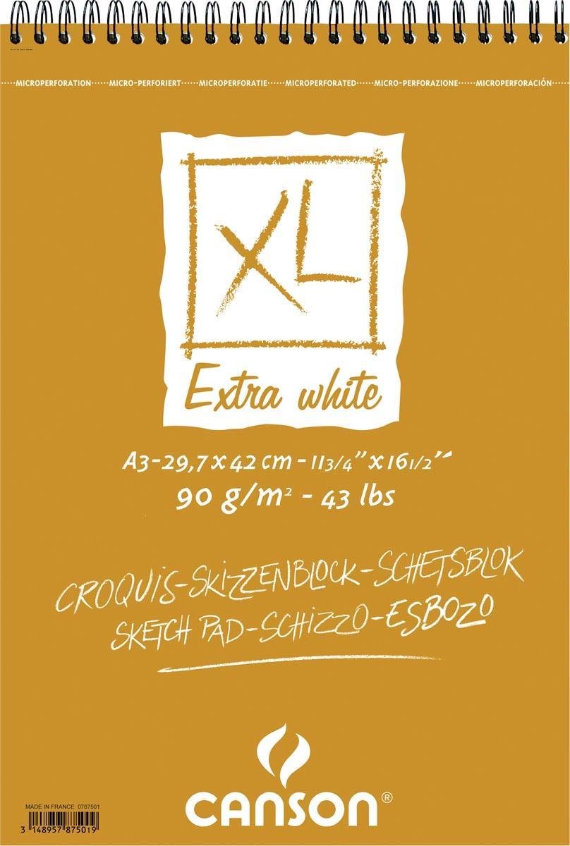 Blok van 120 blad. 90 g/m². Extra wit papier met een weinig uitgesproken korrel, zeer opdikkend. Voor snelle schetsen: potlood, pastel, houtskool en sanguine. Met spiraalbinding op de korte zijde. Met microperforatie.\\n\\nft 29,7 x 42 cm (A3)