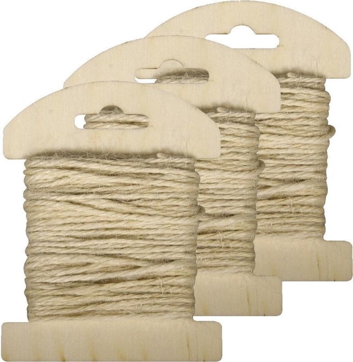 3x Hobby/decoratie touw van jute 10 meter. Het jute koord heeft een dikte van ca: 1,5 mm. Lengte: 10 meter. Materiaal: jute. Creatief hobby materiaal / decoratietouw. Cadeau verpakkingsmateriaal decoratie touw naturel kleur. U ontvangt 3 stuks.
