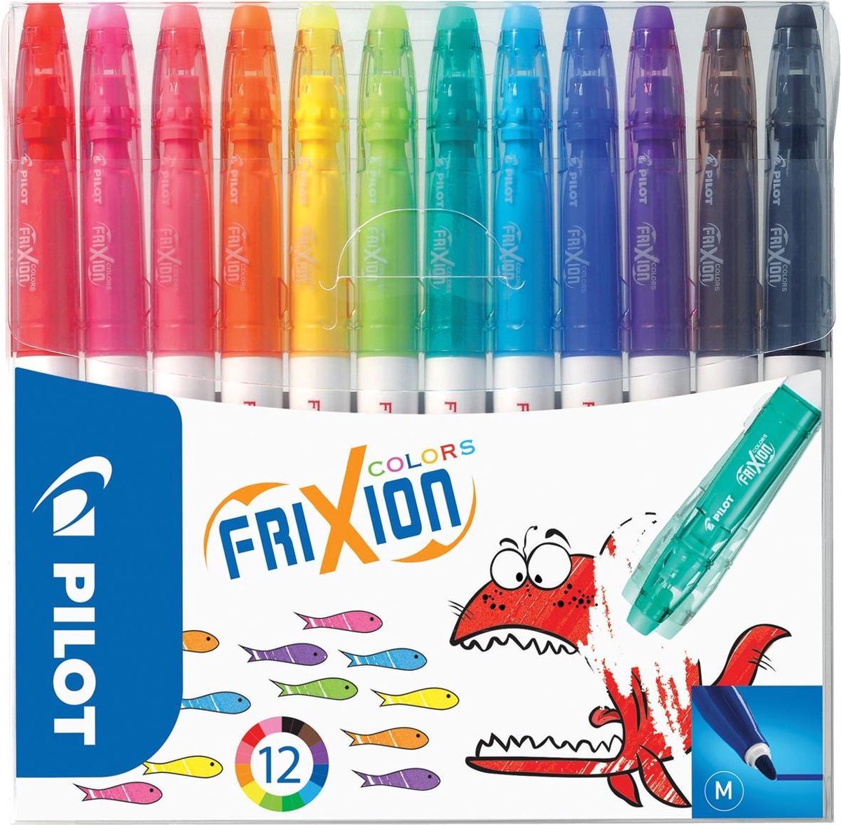 Heldere kleuren. Uitwisbare inkt: kleur, wis met de achterkant van de stift en kleur opnieuw. Wis zonder het papier te beschadigen. Niet geschikt voor kinderen onder de 3 jaar. In een plastic etui.\\n\\n12 stiften