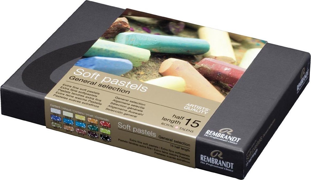 Wereldwijd de meest gebruikte soft pastels. Kenmerkende zachtheid voor excellente kleurafgifte. Gemaakt van de zuiverste pigmenten. Zeer hoge kleurkracht en briljante kleurtonen. Elke pastel ligt in een speciale schuimrubberen bodem. In een kartonnen doos.\\n\\nstarterset met 15 halve soft pastels