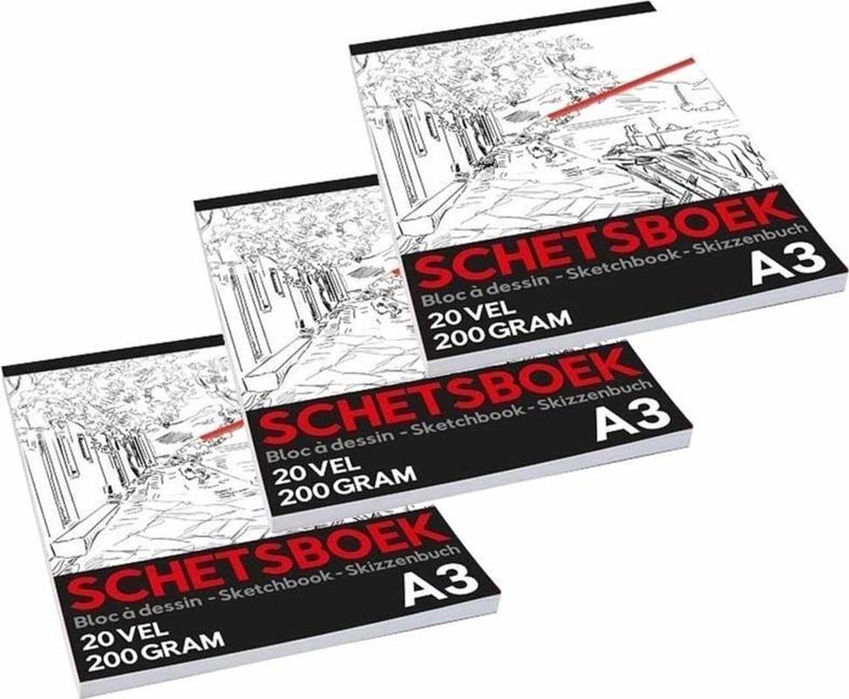 3x Schetsboeken/tekenboeken in A3 formaat. De boeken hebben elk 20 vellen van 200 grams papier. U ontvangt 3 schetsboeken. Schoolartikelen/kantoorartikelen/schilderartikelen professionele schetsboeken voor volwassenen en kinderen.