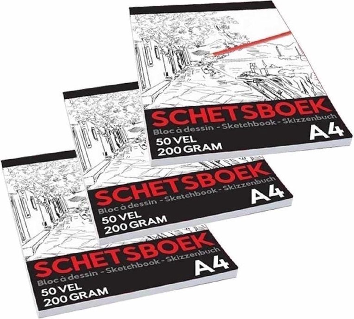3x Schetsboeken/tekenboeken in A4 formaat. De boeken hebben elk 50 vellen van 200 grams papier. U ontvangt 3 schetsboeken. Schoolartikelen/kantoorartikelen/schilderartikelen professionele schetsboeken voor volwassenen en kinderen.