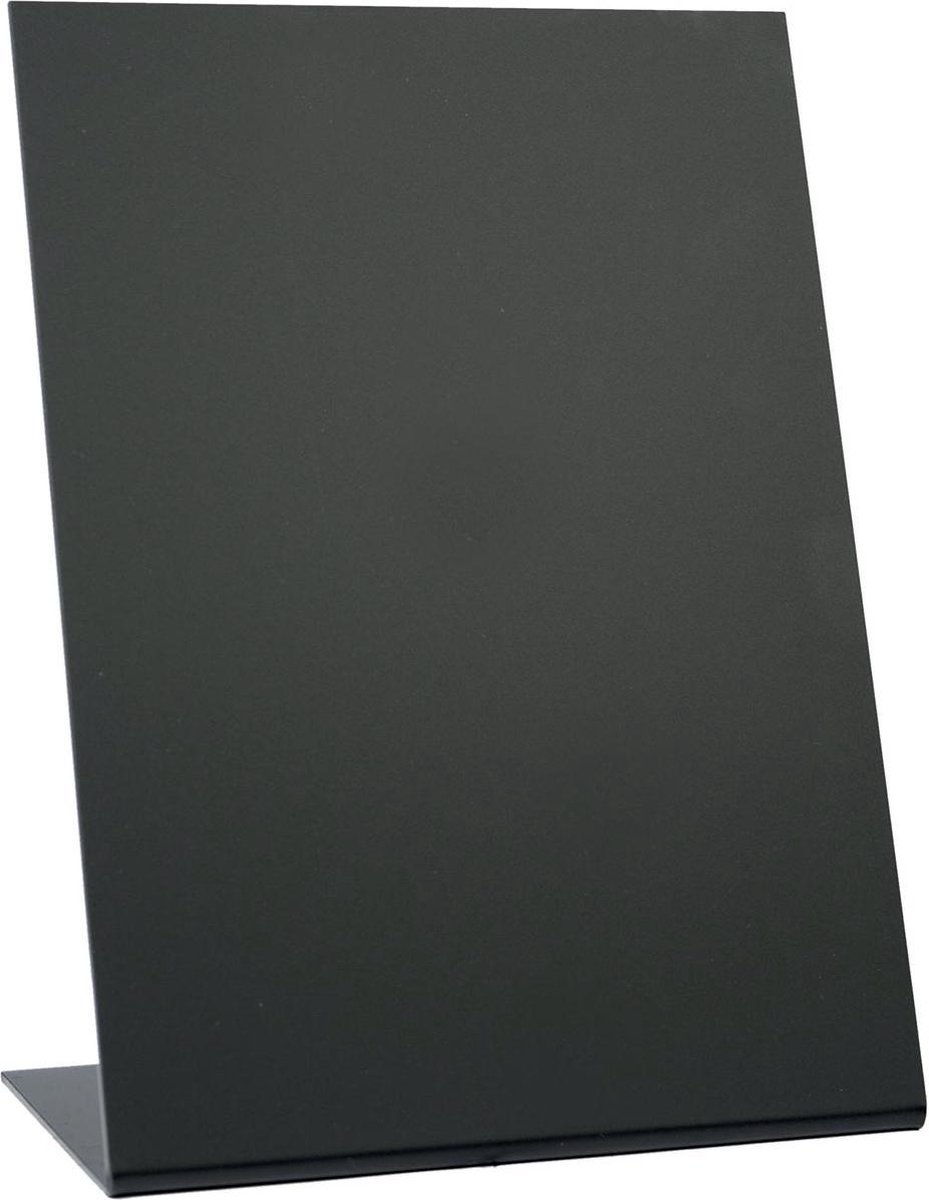 Tafelmodel. L-vormig. Uit robuust en stevig acryl. Mat aan de voorkant, glanzend aan de achterkant. Kleur: zwart. Op blister.\\n\\nft A5, 3 stuks