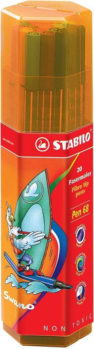 Reukloze inkt op waterbasis. Schitterende glans en kleurintensiteit. Regenereerbaar: indien de stift na 48 uur openblijven uitgedroogd is, plaatst u het dopje er weer op en de stift is weer bruikbaar. 20 stiften in een plastic houder.