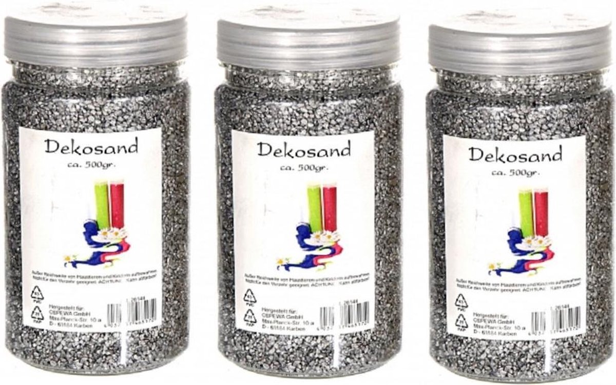 3x stuks potjes zilver decoratie korrelzand in pot. Mooie decoratie voor bijvoorbeeld op een bord met kaarsen. Inhoud: ongeveer 500 gram.