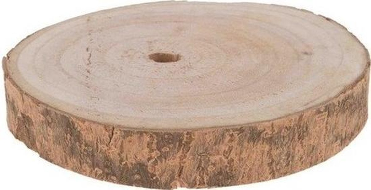 3x Woondecoratie ronde boomschijven 20 cm van Paulowna hout. Ronde houten boomschijf/boomplak van de Paulownaboom. De boomstamschijf kan gebruikt worden als borden of pannen onderzetter, als kaarsenplateau, of ter decoratie met woonaccessoires erop. U kunt de schijf ook zelf decoreren/beschilderen naar wens (materiaal niet inbegrepen). Houten boomschijven/boomstamschijven decoraties. Materiaal: hout. Formaat diameter: ca. 34,5 cm, hoogte/dikte: ca. 3 cm. Dit product betreft een natuurproduct en kan daardoor afwijken van de afbeelding en de bovengenoemde afmetingen.