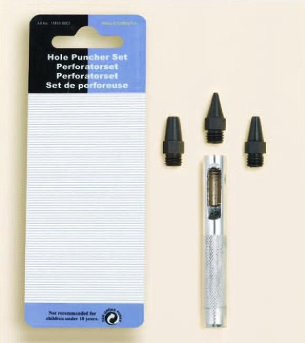 4 Delige eyeletset; 1x Perforatorset Perforatorset Geschikt voor: 1,5mm, 3,0mm en 4,5mm Voor de finishing touch van o.a. kaarten en scrapbook