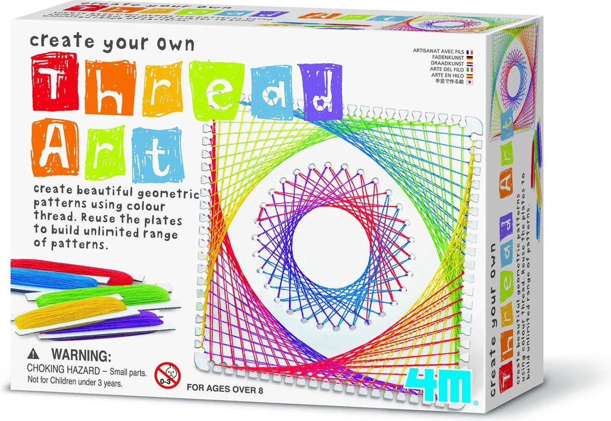 4M Crea Craft Draden spannen Met dit 4M Crea Craft Draden spannen kan je mooie kunstwerken maken. Span de draadjes en maak de mooiste kleurrijkste vormpjes. Inhoud: - 2 platen om draden op te spannen - 5 verschillende kleuren draad - gedetailleerde instructies Afmetingen doos: 18 x 14 x 6 cm Geschikt voor kinderen vanaf 5 jaar.