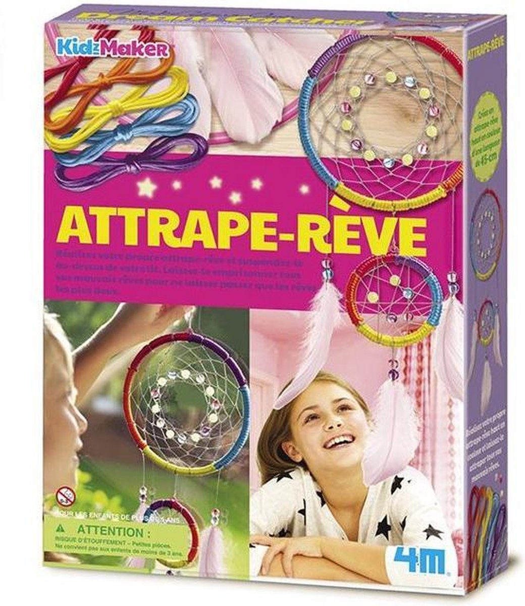 4M Dream Catcher knutselpakket Maak jouw eigen dromenvanger en hang het boven jouw bed. De legende gaat dat de dromenvanger al jouw slechte dromen vangt en enkel de goede dromen doorlaat zodat je een heerlijke nacht hebt. Specificaties: Kleur: multicolor Geslacht: junior Materiaal: kunststof, nylon Afmetingen verpakking: 28 x 21 x 6 cm (L x B x H) Diameter droomvanger: 16 cm Leeftijd: vanaf 5 jaar Inhoud: 2 Ringen 1 Set kralen 1 Set glow in the dark-kralen 6 Setjes touw 3 Veren 1 Tube lijm