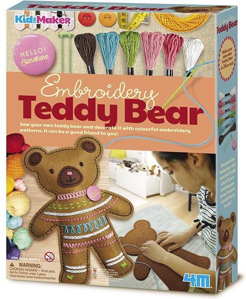 4M KidzMaker: Teddy Bear Maak jouw eigen teddybeer. De voorgeprikte stof naai je eenvoudig aan elkaar met naalden die veilig zijn voor kinderen! Nadat je de beer gevuld hebt, kun je hem met de bijgeleverde draad versieren. Urenlang knutselplezier gegarandeerd. Specificaties: Kleur: bruin Geslacht: meisjes Materiaal: vilt, textiel Afmetingen verpakking: 28 x 21 x 6 cm (L x B x H) Lengte beer: 24 cm Leeftijd: vanaf 5 jaar Inhoud: 1 Set vormen 6 Klosjes draad 1 Badge 2 Naalden 1 Handleiding