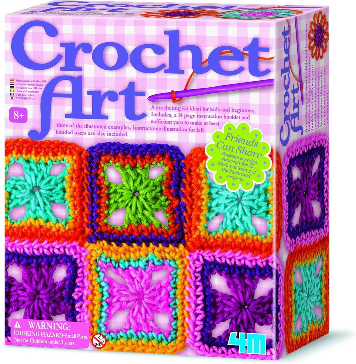 Met 4M Crea Easy Knit - Haakwerk beginnerspakket van 4M leert je de basistechniek van het haken van vierkanten of cirkels. Uiteindelijk kan je van deze vormen je eigen tas, sjaal of onderzetter maken. Het pakket bevat 2 haaknaalden, 1 plastic naald, 7 verschillende kleuren wol en gedetailleerde instructies.