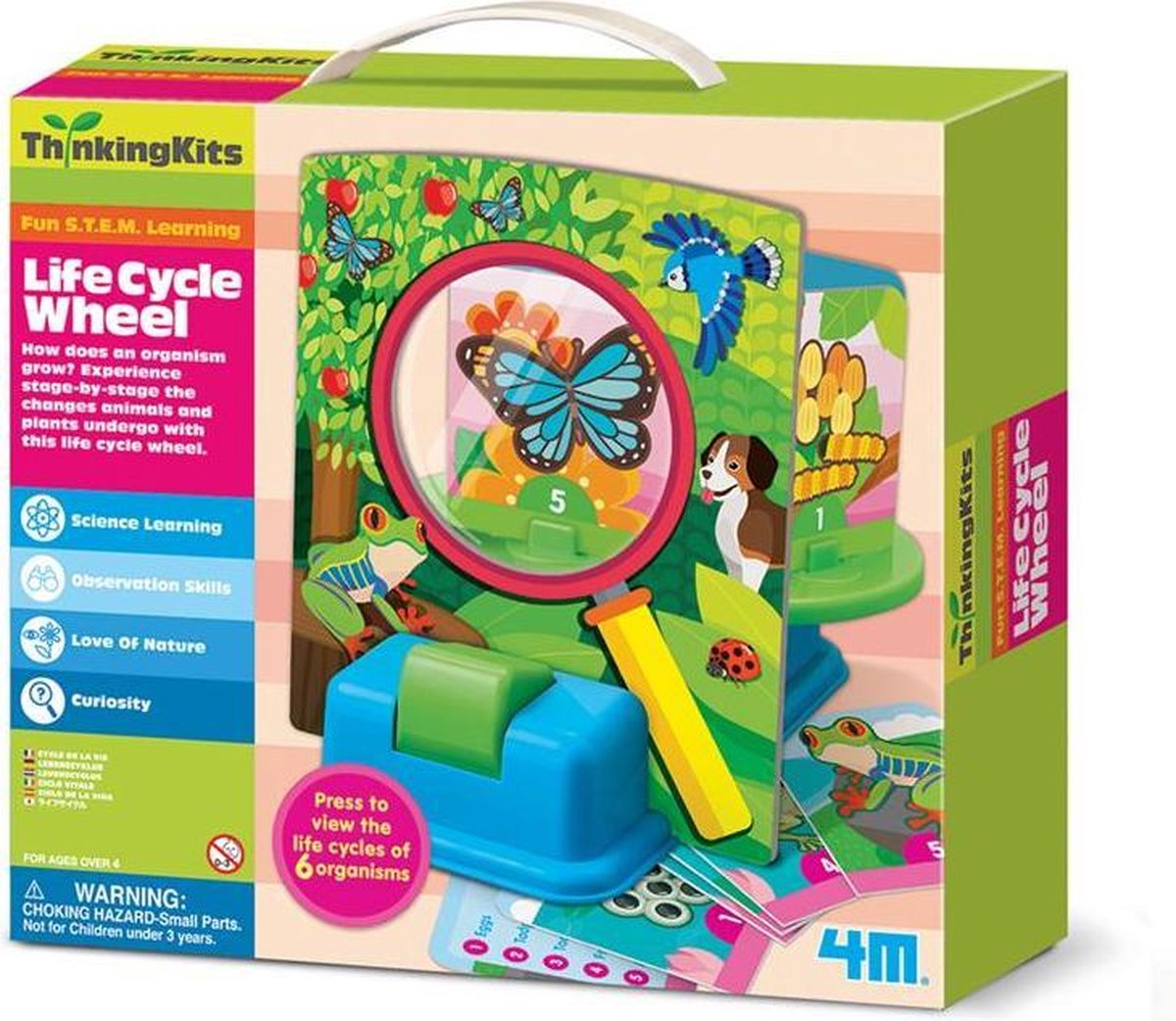 4M Thinking Kits Levencyclus leerset Met deze leerset leren kinderen alles over de levenscyclus van dieren. Ze leren stap voor stap hoe organismen ontstaan en hoe deze zich ontwikkelen. Specificaties: Kleur: multicolor Materiaal: karton Geslacht: junior Afmetingen verpakking: 24 x 22 x 6 cm Geschikt voor kinderen vanaf 4 jaar.