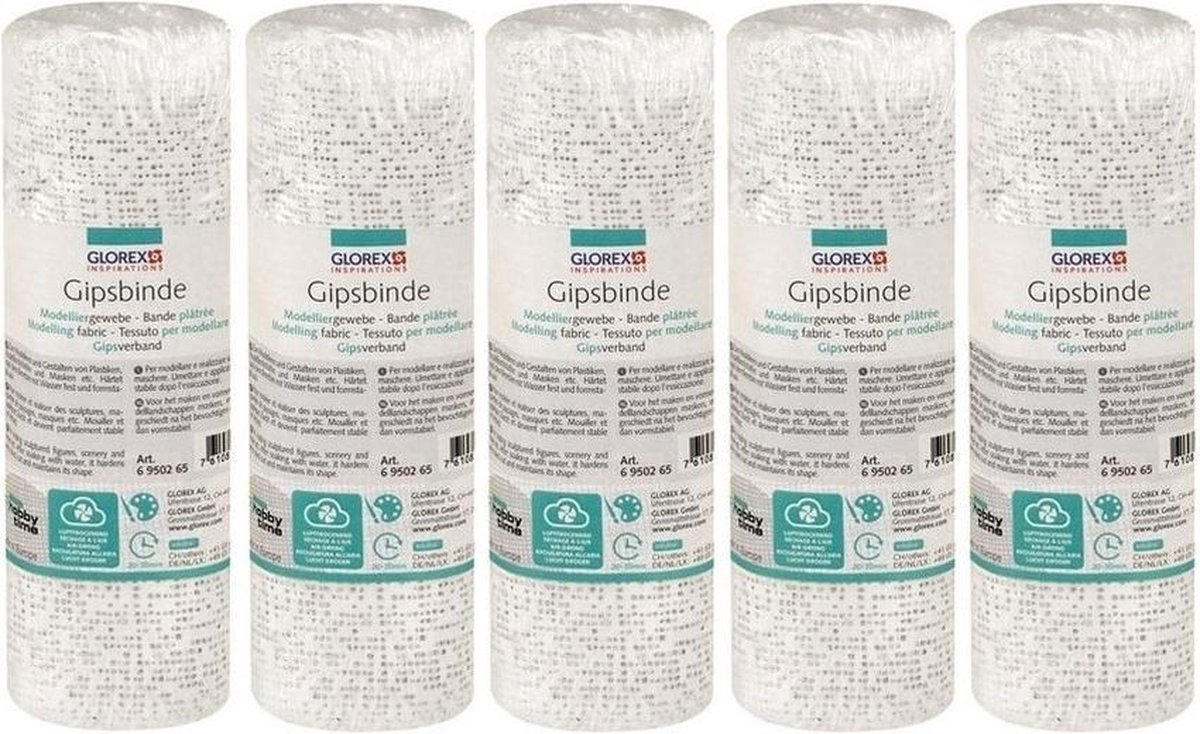 5 rollen huidvriendelijk gipsverband met een lengte van 2 meter. De hoogte is ca. 16 cm. De rollen gipsverband zijn bijvoorbeeld zeer geschikt om een afdruk van een zwangere buik te maken! Gebruiksaanwijzing: - Knip het in de gewenste lengte - Dompel het verband onder in een bak water zodat het zacht wordt - Bind het om het gewenste lichaamsdeel of leg het er op. - Binnen 20 tot 40 min is het volledig uitgehard en kunt het makkelijk verwijderen. - Schuur het zachtjes op - Schilder/versier het zoals u dat wil! Resten op kleding kan worden verwijderd in de wasmachine. U ontvangt 5 rollen gipsverband.