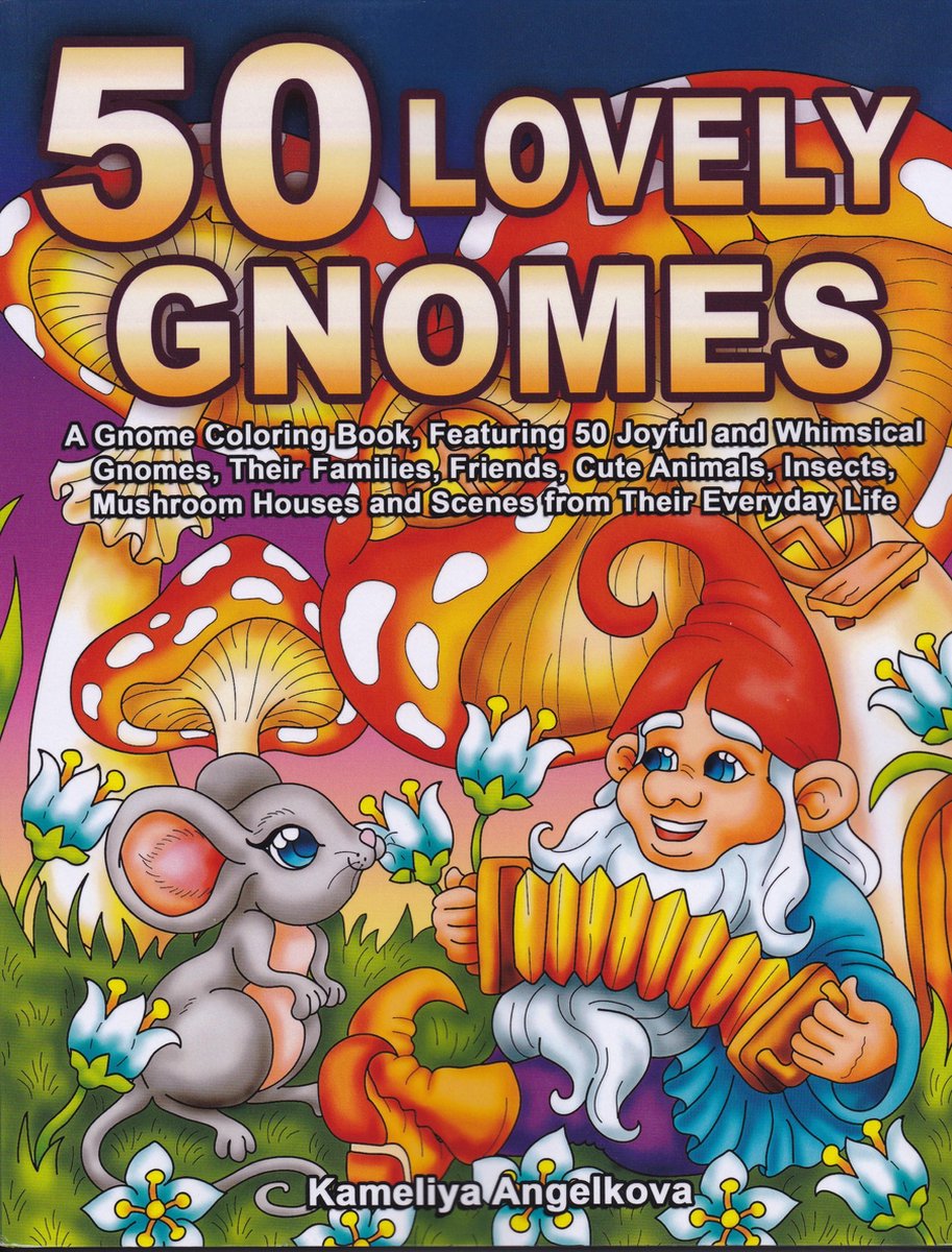 Kleurboek voor volwassenen / Adult Coloring Book from Kameliya Angelkova with 50 Joyful and Whimsical Gnomes, Their Families, Friends, Cute Animals, Insects, Mushroom Houses and more! ISBN 9798667468097, Engels, Afmeting: 21,6 x 0,7 x 27,9 cm, 112 pagina's, paperback, eenzijdig bedrukt, 19 juli 2020