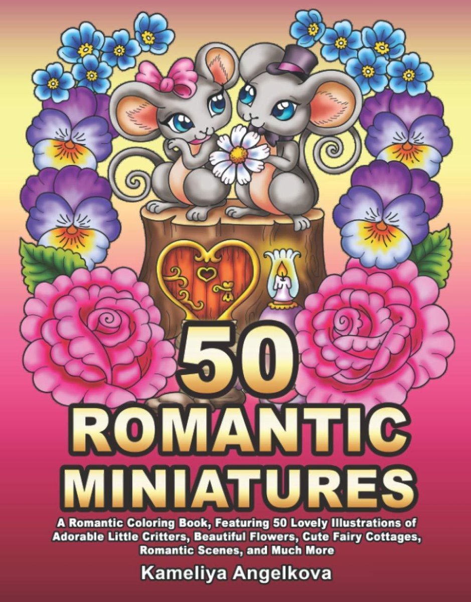 Kleurboek voor volwassenen / Adult Coloring Book featuring 50 lovely illustrations of Adorable Little Critters, Beautiful Flowers, Cute Fairy Cottages, Romantic Scenes and Much More, paperback, 110 pagina's, engelstalig, 24 januari 2021 Special! Exclusive! Cute! Romantic! 50 unique and distinct hand-drawn illustrations to choose from! 50 beautifully created, all hand-drawn, romantic-themed illustrations, as well as many cute and diminutive idyllic scenes to keep you enjoyed, free of any stress, calm, happily relaxed, and inspired for hours! Ideal for Valentine’s Day; for any special occasion, and for all romantic souls: The coloring book offers everything that makes your day full of romance! It features many little critters in love, romantic scenes, various fairy-type cottages, pretty flowers, sweets, desserts, and treats, lanterns, and many more! Easy on the eye, distinct lines: The designs are entitled “miniatures” because they don’t need too much of your time to be colored