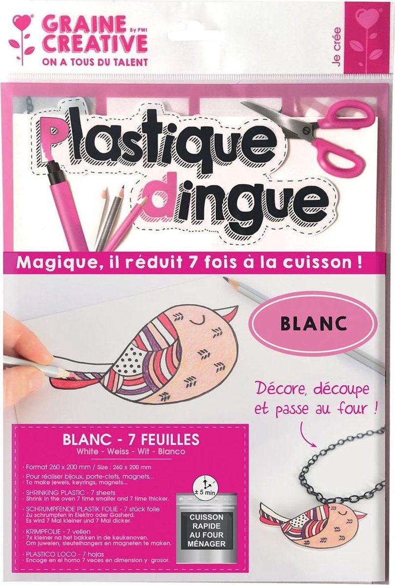 Knutselen met krimpplastiek doe je zo: - Maak een tekening, knip ze uit - Bak de tekening in de oven - Het plastiek krimpt en wordt hard In ophangetui, ft van plastiek: 26,2 x 20,2 x 0,2 cm\\n\\netui van 7 vellen, wit
