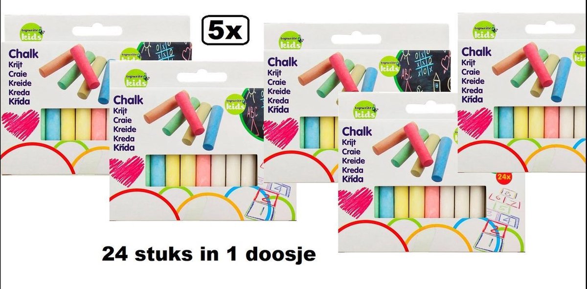 5x Pakje met 24 schoolbord krijtjes in diverse kleuren en wit.. Lengte ca. 8cm.