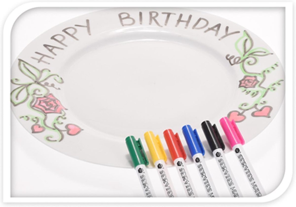 6-delig markerset voor het versieren van porselein. Denk hierbij aan het personaliseren van het serviesset maar ook van die saaie bloempot op de vensterbank.