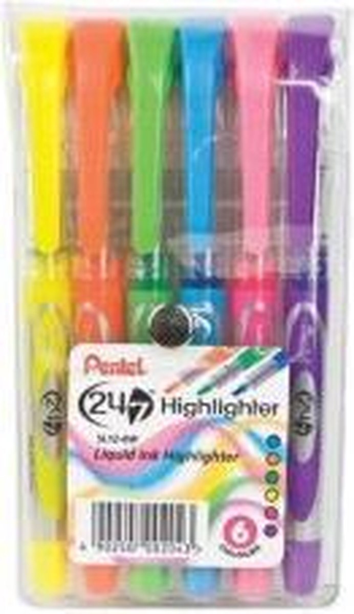 Highlight Stiften 6 Stuks in de kleuren: Geel Groen Paars Blauw Oranje Roze