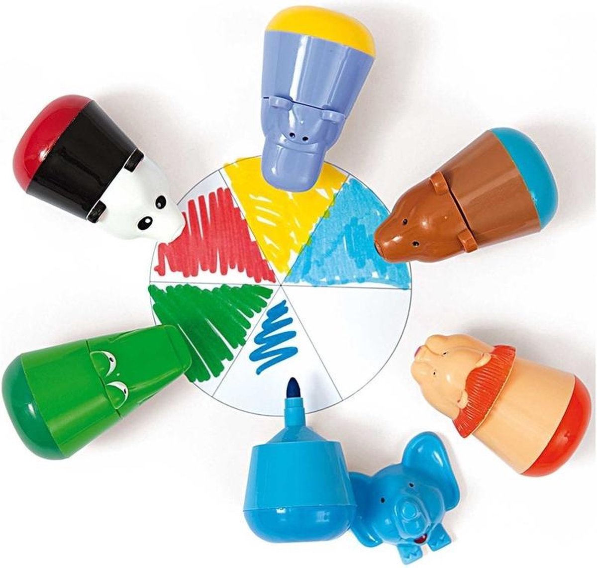 6x Gekleurde viltstiften safaridieren figuren. Een set van 6 vrolijke vilt stiften in de vorm van dierenhoofden zoals een leeuw, krokodil, olifant, nijlpaard, pandabeer en bruine beer. Ieder dier figuurtje heeft een eigen kleur. De stiften liggen goed in (kleine) kinderhanden. Eventuele stiftvlekken zijn te verwijderen bij 40 graden wassen. Viltstiften in safari/wilde dieren thema. Hobby/knutsel/tekenmateriaal voor peuters/kinderen.
