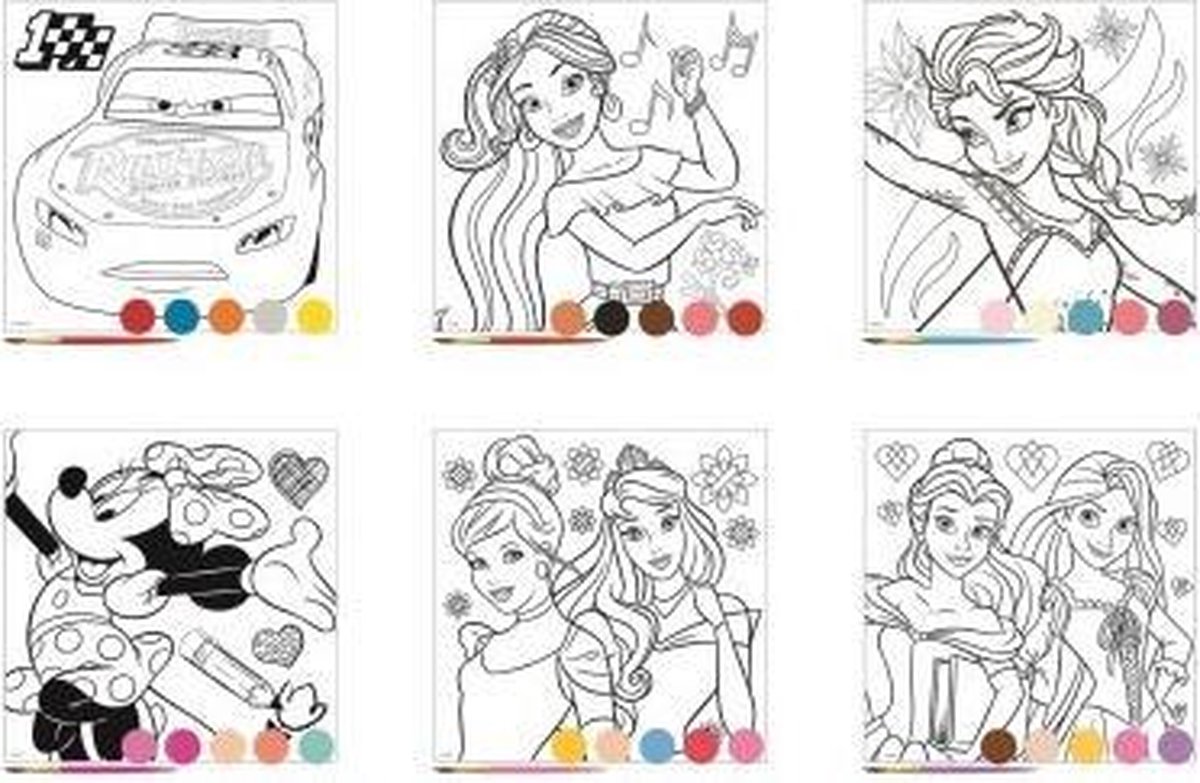U ontvangt 6 schildersetjes van disney, elke set bestaat uit: De inhoud van de schilderset bedraagt canvas (1x), kwast (1x), verf (5 kleuren) Alle assorti artikelen hebben een andere barcode Niet geschikt voor kinderen onder de 3 jaar in verband met verstikkingsgevaar Afmeting artikel: 25 x 25 x 1,5 cm. Gewicht: 150 gram