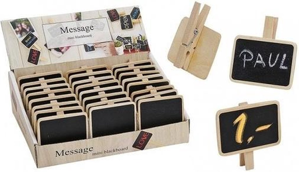 8x stuks krijtbordjes op knijper 7 x 5 cm. Handig als naambordjes.