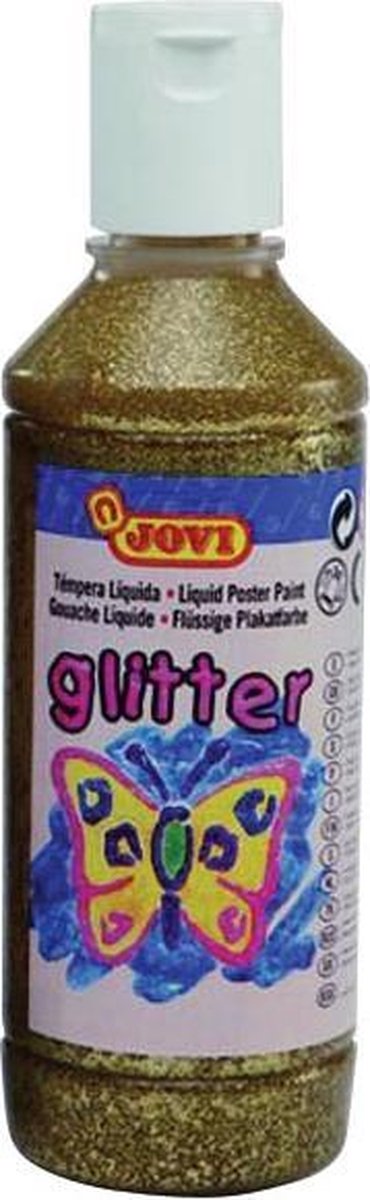 Plakkaatverf met glitters. Goed dekkende verf, gemakkelijk in gebruik. Voor kinderen vanaf 3 jaar. Kan gebruikt worden op alle soorten van poreus materiaal zoals mat papier, Bristol papier, karton, hout, enz.\\n\\nflacon van 250 ml, goud