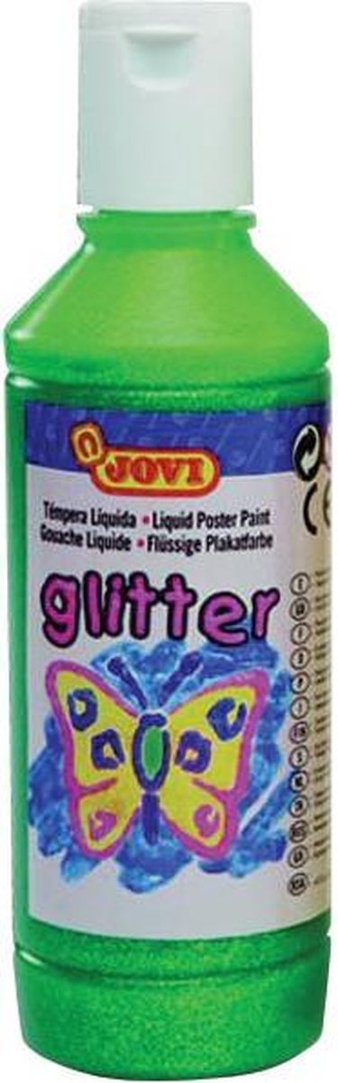 Plakkaatverf met glitters. Goed dekkende verf, gemakkelijk in gebruik. Voor kinderen vanaf 3 jaar. Kan gebruikt worden op alle soorten van poreus materiaal zoals mat papier, Bristol papier, karton, hout, enz.\\n\\nflacon van 250 ml, groen