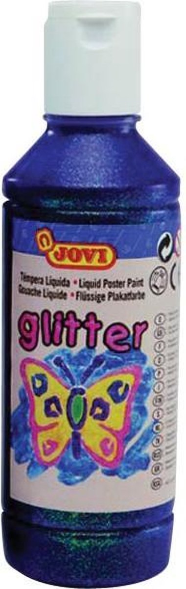 Plakkaatverf met glitters. Goed dekkende verf, gemakkelijk in gebruik. Voor kinderen vanaf 3 jaar. Kan gebruikt worden op alle soorten van poreus materiaal zoals mat papier, Bristol papier, karton, hout, enz.\\n\\nflacon van 250 ml, paars