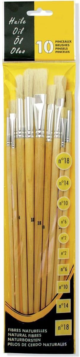 Natuurlijke vezels. Set van 5 ronde penselen (nr 2, 6, 10, 14, 18) en 5 platte penselen (nr 2, 6, 10, 14, 18). Lange steel.