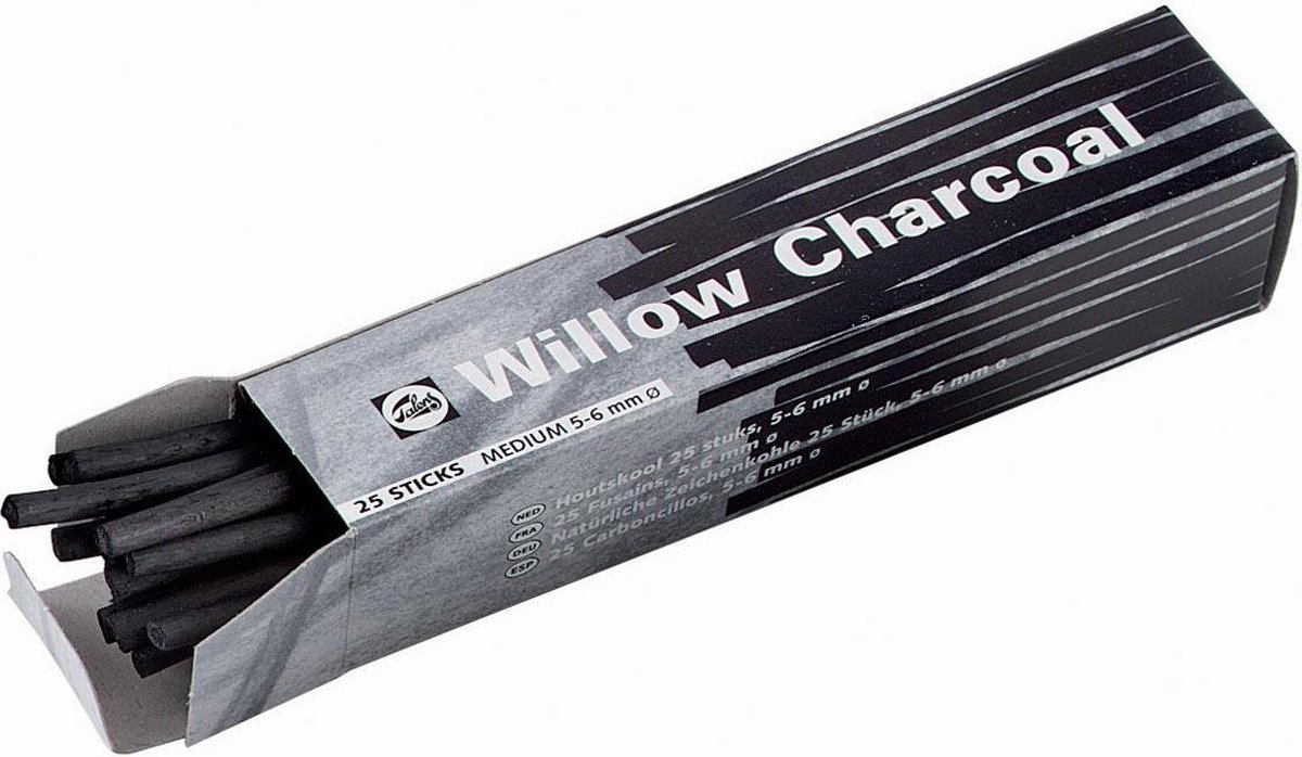 Geeft een rijke, volle kleur. Uit de beste kwaliteit wilgentakken. Lengte: 14 cm.\\n\\ndoosje van 25 stuks, diameter: 5 - 6 mm, voor grove schetsen