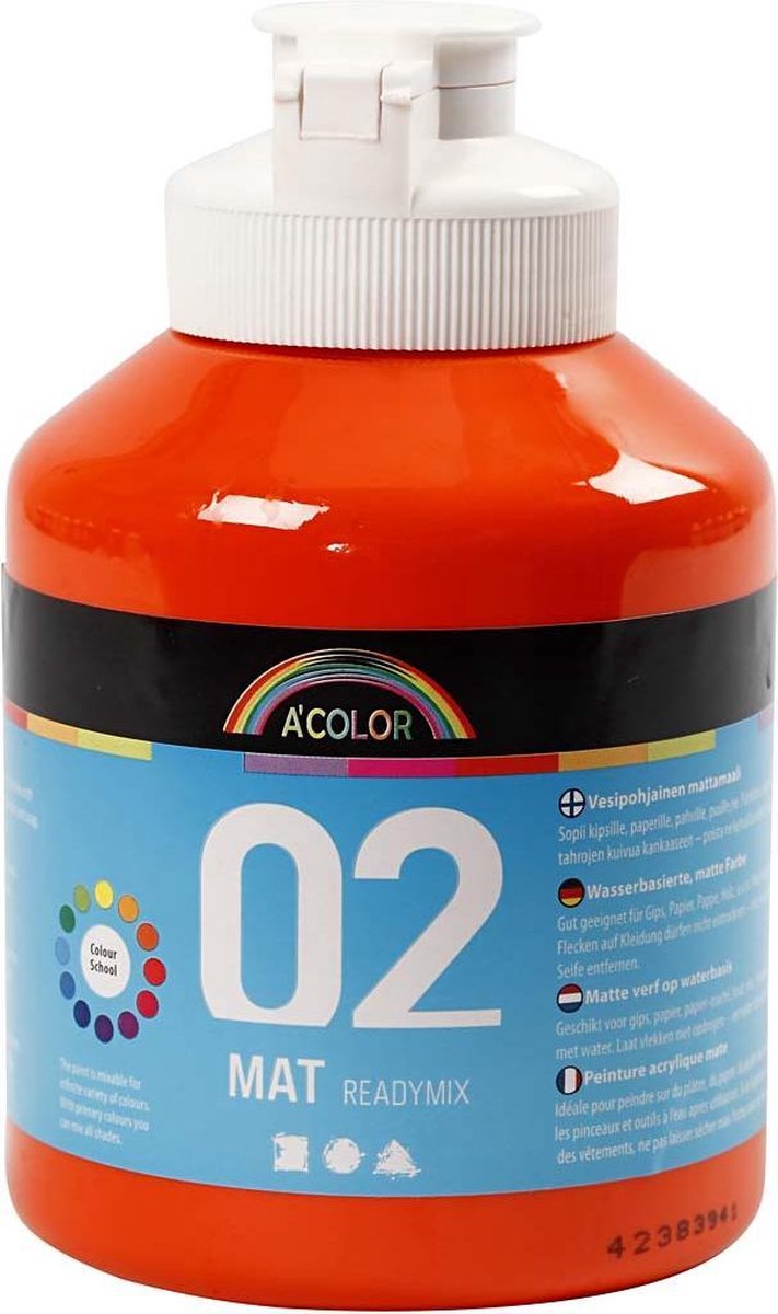 A-Color acrylverf (500 ml) Hoge kwaliteit dekkende allround acrylverf op waterbasis - droogt mat op - geschikt voor papier, hout, canvas etc. Kan onderling worden gemengd. Kwasten schoonmaken met lauw water.