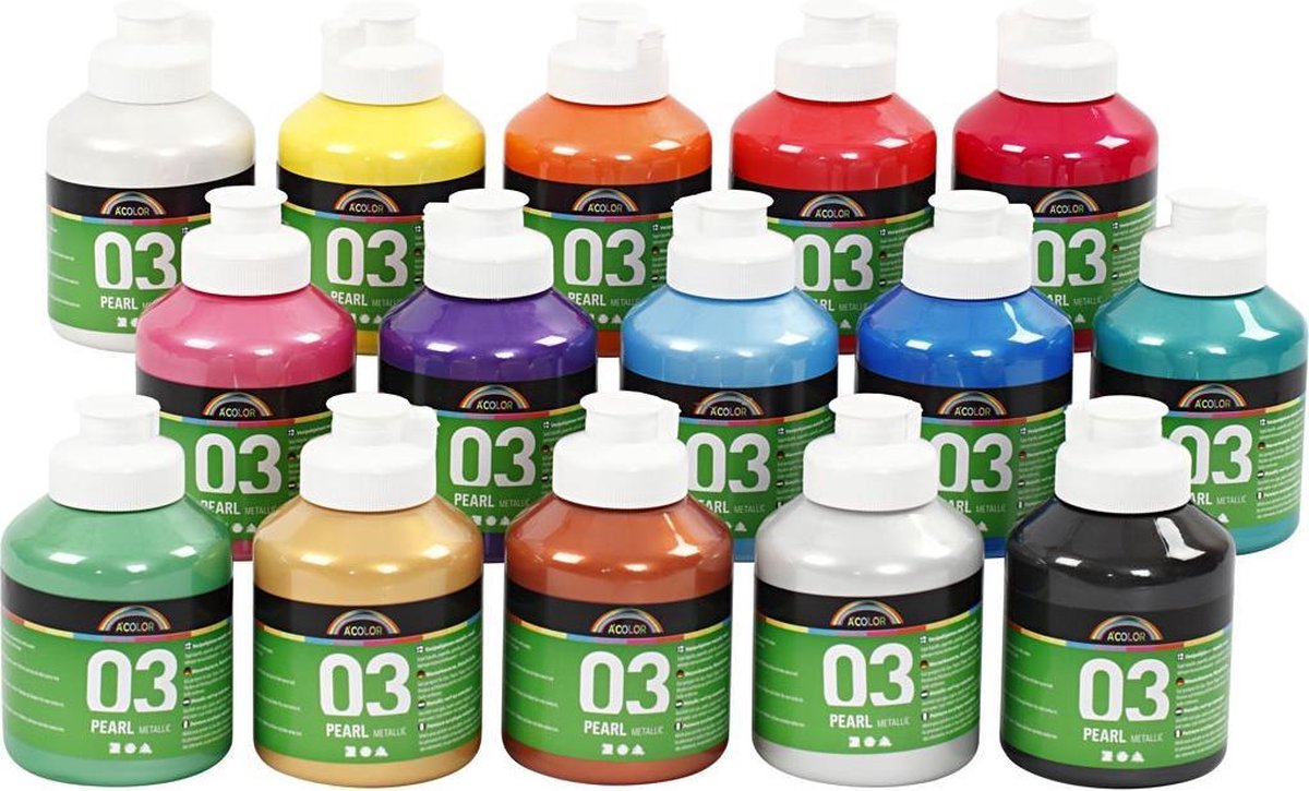 Mooie kwaliteit metallic verf op waterbasis - prachtige glanzende kleuren - geschikt voor bijna elk vetvrij oppervlak. Kan onderling worden gemengd. Kwasten schoonmaken met lauw water.Mooie kwaliteit glanzende acrylverf op waterbasis. Kleuren kunnen gemengd worden. Kwasten schoonmaken in lauw water.