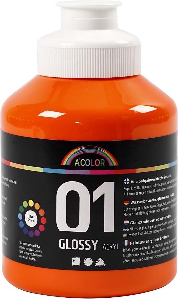 A-Color acrylverf. oranje. afm 01. glossy. 500 ml/ 1 fles