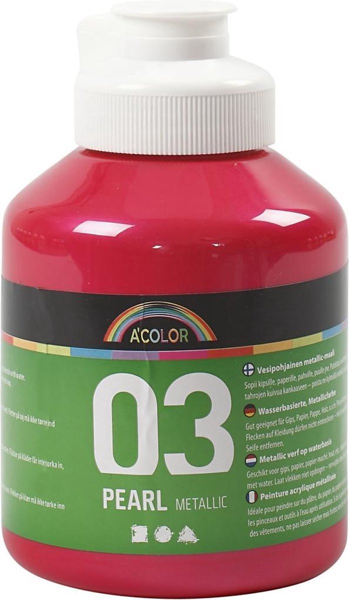Mooie kwaliteit metallic verf op waterbasis - prachtige glanzende kleuren - geschikt voor bijna elk vetvrij oppervlak. Kan onderling worden gemengd. Kwasten schoonmaken met lauw water.Mooie kwaliteit metallic verf op waterbasis - prachtige glanzende kleuren - geschikt voor bijna elk vetvrij oppervlak.