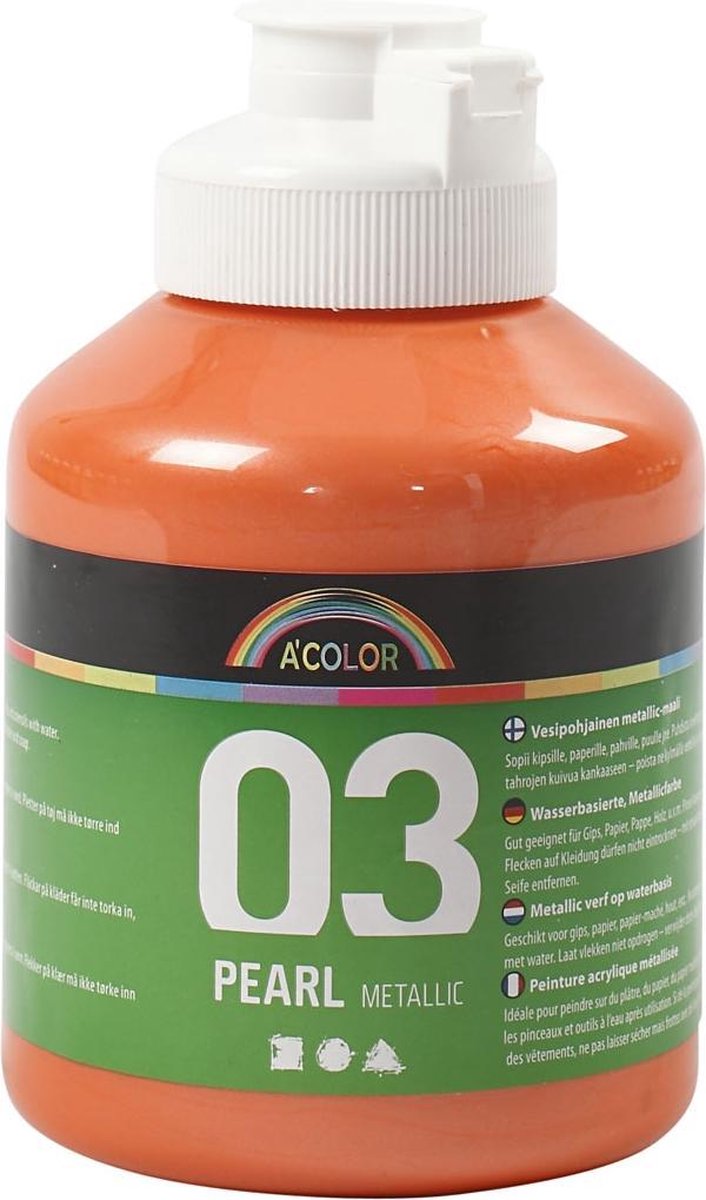 A-Color acrylverf (500 ml) Mooie kwaliteit metallic verf op waterbasis - prachtige glanzende kleuren - geschikt voor bijna elk vetvrij oppervlak. Kan onderling worden gemengd. Kwasten schoonmaken met lauw water.