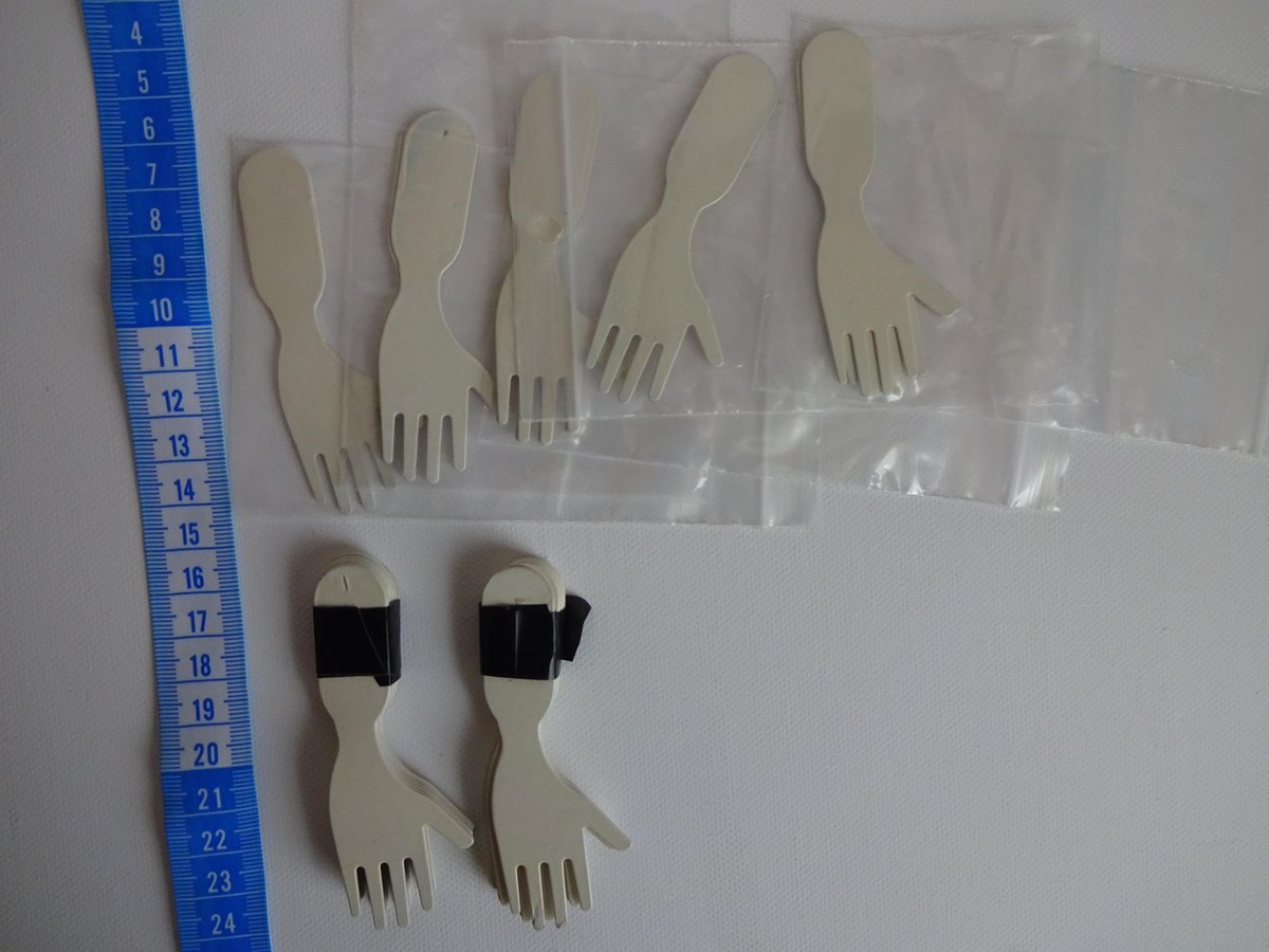 AANBIEDING: 10 PAAR INZETHANDJES 8 CM VOOR POP TOT CIRCA 45 CM. WIT. HOU JE VAN POPPEN MAKEN EN OF VERNIEUWEN, DAN IS DIT JE KANS, WIJ STOPPEN MET DE WINKEL, EN ALLE POPPEN MATERIAAL GAAT IN DE AANBIEDING, ZOLANG DE VOORRAAD STREKT. KIJK OOK BIJ: PRUIKJES, HEMDJES, SCHOENTJES, SOKJES, ENZ.