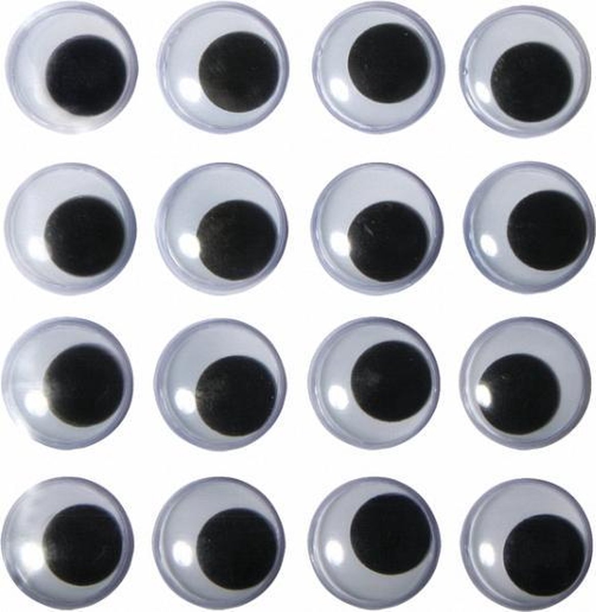Aannaaibare wiebel oogjes 8 mm. Plastic wiebel ogen met een formaat van ongeveer 8 mm. De oogjes zijn vast te maken met naald en draad en er zitten 10 stuks in een zakje.