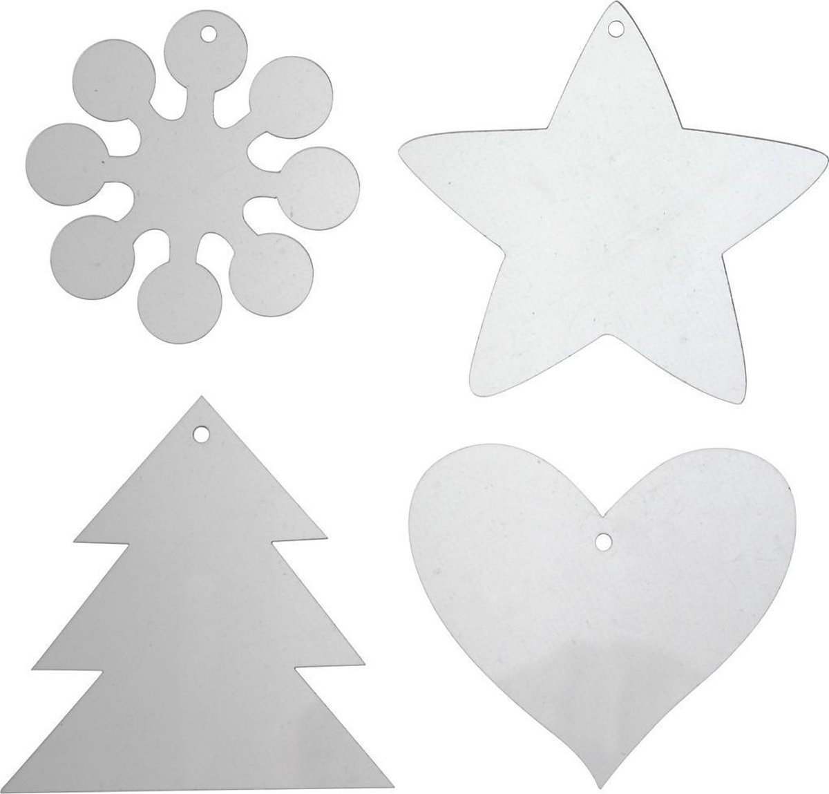 Enkele decoratie van transparant acryl met ophangoog Displaydoos met 4 verschillende designs: ster, hart, sneeuwkristal en kerstboom.Enkele decoratie van transparant acryl met ophangoog.