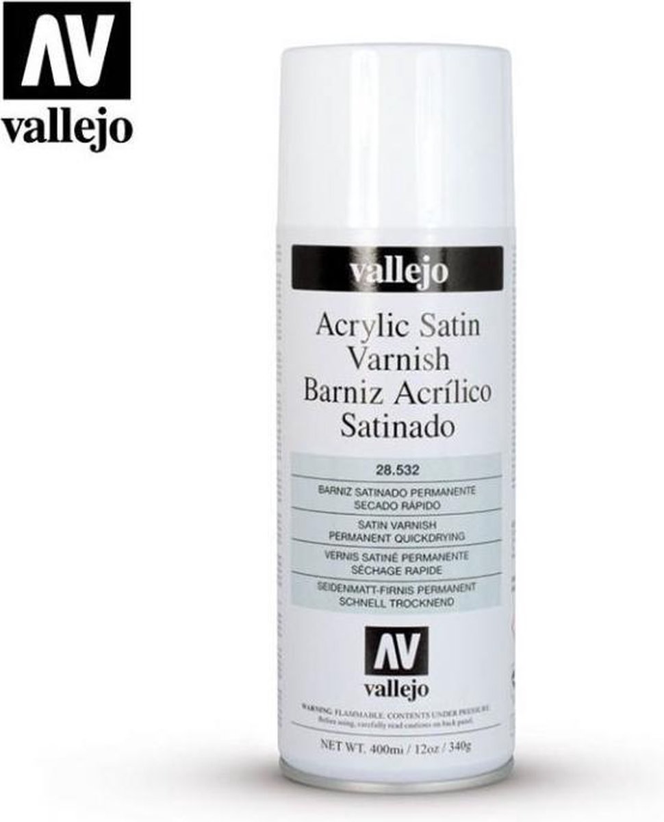 Deze Vallejo Acrylic Satin Varnish is een zijdeglans vernis in een spuitbus van 400ml. De vernis is eenvoudig aan te brengen. Als u meerdere dunne lagen wilt aanbrengen adviseren wij u dit te doen met een interval van 30 min.