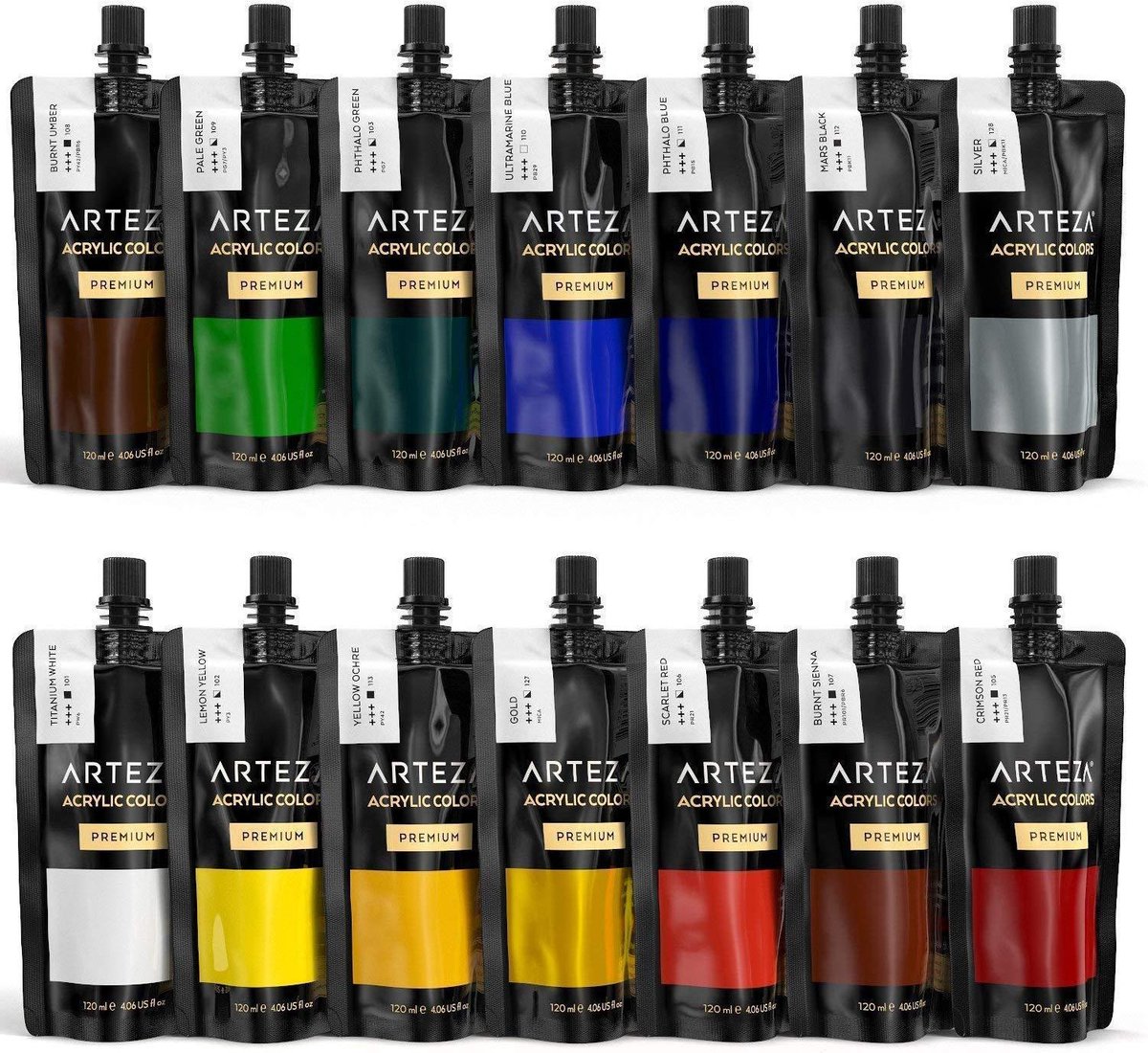 KLEURENSELECTIE IN KUNSTENAARSKWALITEIT - Het maakt niet uit of u net bent begonnen met acrylverf of een ervaren kunstenaar bent. • RIJKE, LICHTGEVENDE PIGMANTE - Uw hoogwaardige acrylverfset wordt gekenmerkt door een gladde en sterk gepigmenteerde kleur om echte, consistente tinten te bereiken. Ideaal voor canvas schilderij omdat deze kleuren niet vervagen. • GECERTIFICEERD VEILIG & NIET-GIFTIG - Met onze acrylverven hoeft u zich geen zorgen te maken over toxiciteit. Ze zijn ACMI-gecertificeerd en daarom getest op hun niet-toxiciteit. Ze zijn ideaal voor creatieve hobbykunstenaars. • ROBUUSTE VERPAKKING - De buizen van acrylverf kunnen worden opgeslagen in hun stevige doos en de plastic planken kunnen erin worden gestapeld. Ideaal om uw acrylkleuren te allen tijde georganiseerd en toegankelijk te houden.