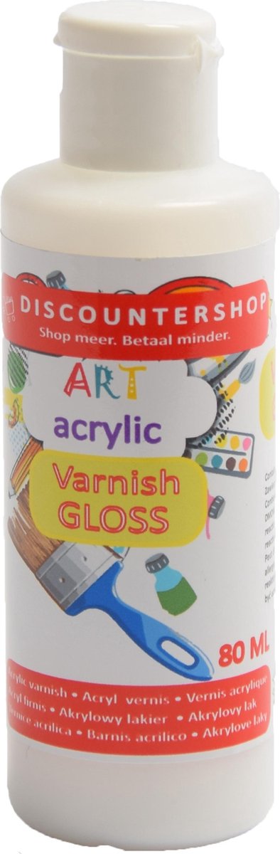 Acrylvernis 80ML - Glanzende vernis - Transparant - Gloss - Acrylic varnish Gloss Inhoud van deze Acrylvernis is 80 ml en is transparant - Glossy - Dit is lak op waterbasis en is na 24 uur watervast.