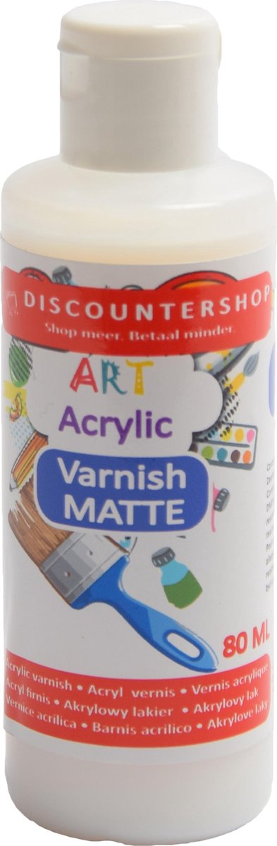 Acrylvernis 80ML - mat vernis - Transparant - Matt- Acrylic varnish Mat Inhoud van deze Acrylvernis is 80 ml en is transparant - Mat- Dit is lak op waterbasis en is na 24 uur watervast. In de verpakking zit 1 x Acrylic 80ml mat
