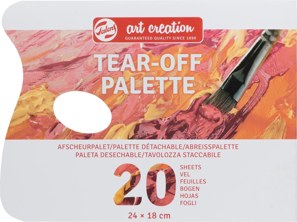 Talens Art Creation Tear-off palette Papieren afscheurpalet met olie- en waterdicht papier met handig ovaal duimgat voor betere grip. Geschikt voor olie-acryl- en plakkaatverf20 vel18 x 24 cm