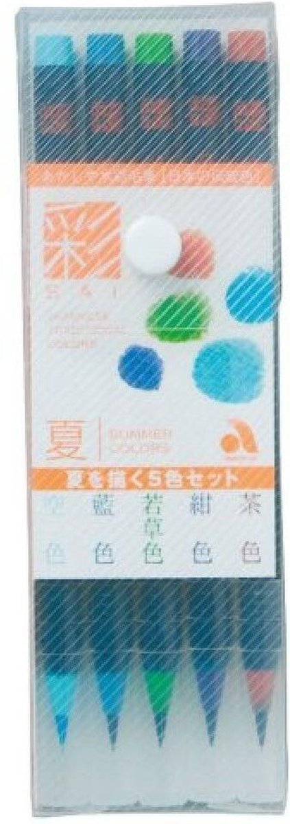 Akashiya 4 seasons Sai brushing pens maken het makkelijker dan ooit om prachtige waterkleuren kunst te maken waar dan ook en wanneer jij wilt Het slimme design zorgt er voor dat je geen palet of water nodig hebt verwijder de dop en je kan aan de slag ! De kleuren blenden met water en zijn te combineren met meerdere kleuren en water brush pennen om prachtige geleidelijke kleuren te maken. Deze set bevat de kleuren : Donker blauw, Indigo, limoen groen, Thee bruin, Lucht blauw. Waarom Akashiya sai pennen? : Akashiya maakt al 380 jaar kwasten en inkt in Nara Japan, dat merk je aan de kwaliteit ! De inkt neemt water perfect op. Synthetische borstel punt. Winnaar van Stationery awards in Japan. Voor 15:00 besteld vandaag verzonden.