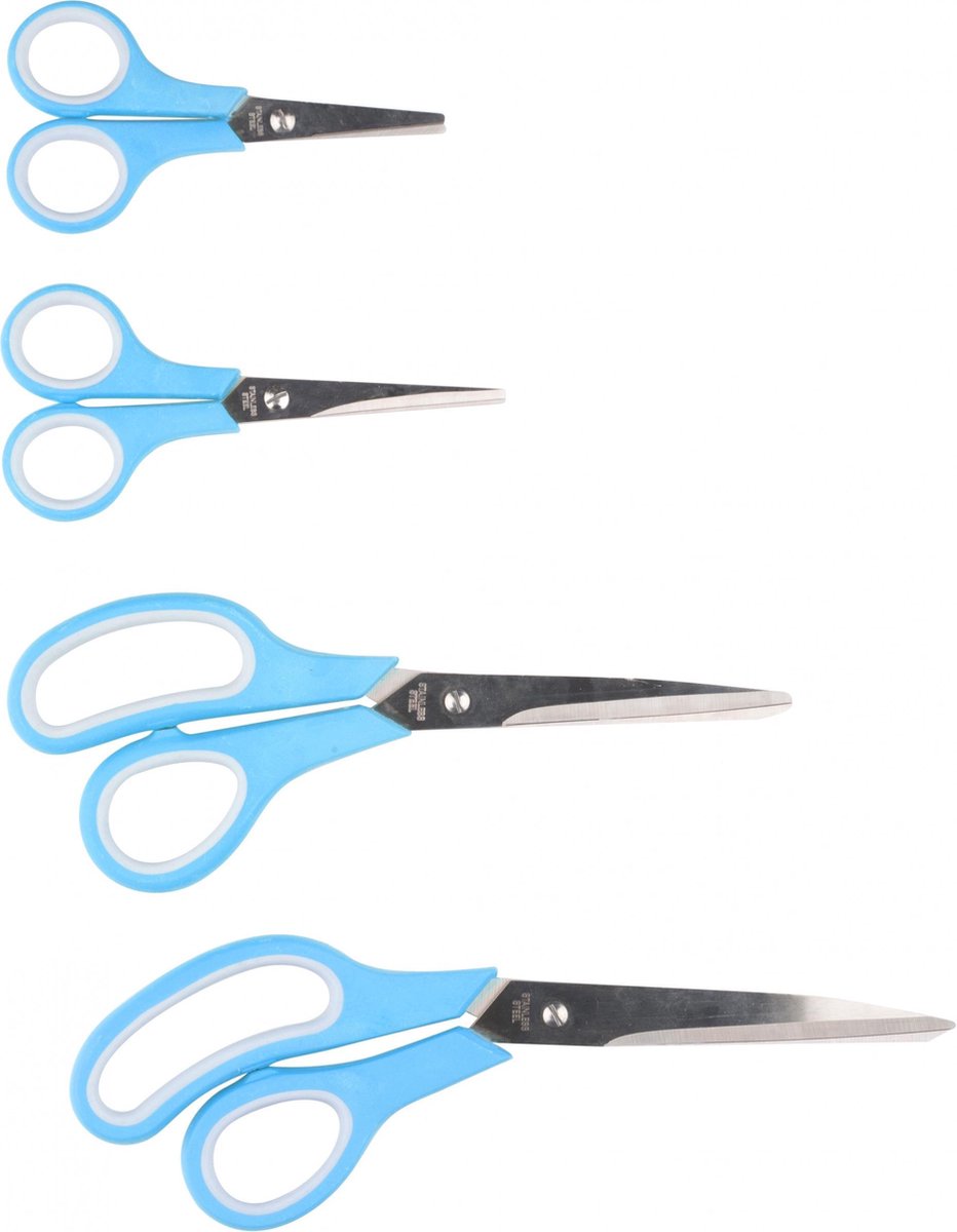 Alpina scharenset Voor iedere klus een schaar. Een complete scharenset met vier scharen in verschillende maten. Specificatie: Geslacht: junior, unisex Kleur: blauw, zilver Materiaal: kunststof, RVS Maten: 12-14-21-25 cm Leeftijd: vanaf 6 jaar Inhoud: 4 Scharen