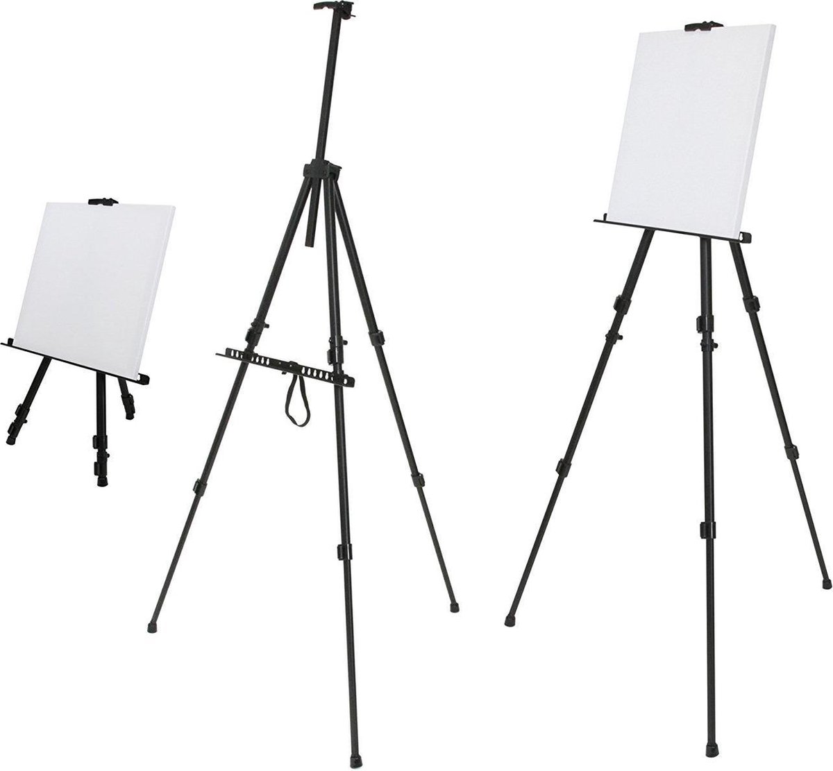 Stevige lichtgewicht metalen veldezel die je makkelijk mee kunt nemen. De ezel weegt weinig en is snel op te zetten, maar is toch zeer stabiel. Er passen schildersdoeken van 15-120cm op. In hoogte verstelbaar 51 cm - max. 161 cm. De drager kan in hoogte versteld worden van 43 tot 101cm. De poten zijn voorzien van anti-slip dopjes.