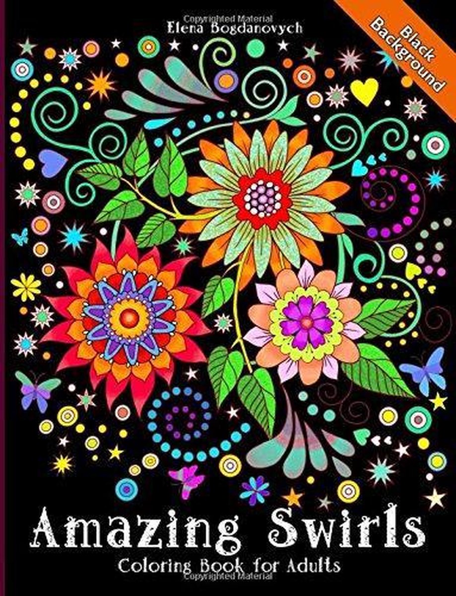 Kleurboek voor volwassenen / Adult Coloring Book. This coloring book is the Black Background version of Amazing Swirls by Elena Bogdanovych. 31 designs of various difficulty levels representing animals and floral compositions with a swirls style accent. ISBN 9781720445128, Engelstalig, eenzijdig bedrukt, zwarte achterzijde, 68 pagina's, Afmeting: 21,6 x 0,4 x 27,9. 2 juni 2018