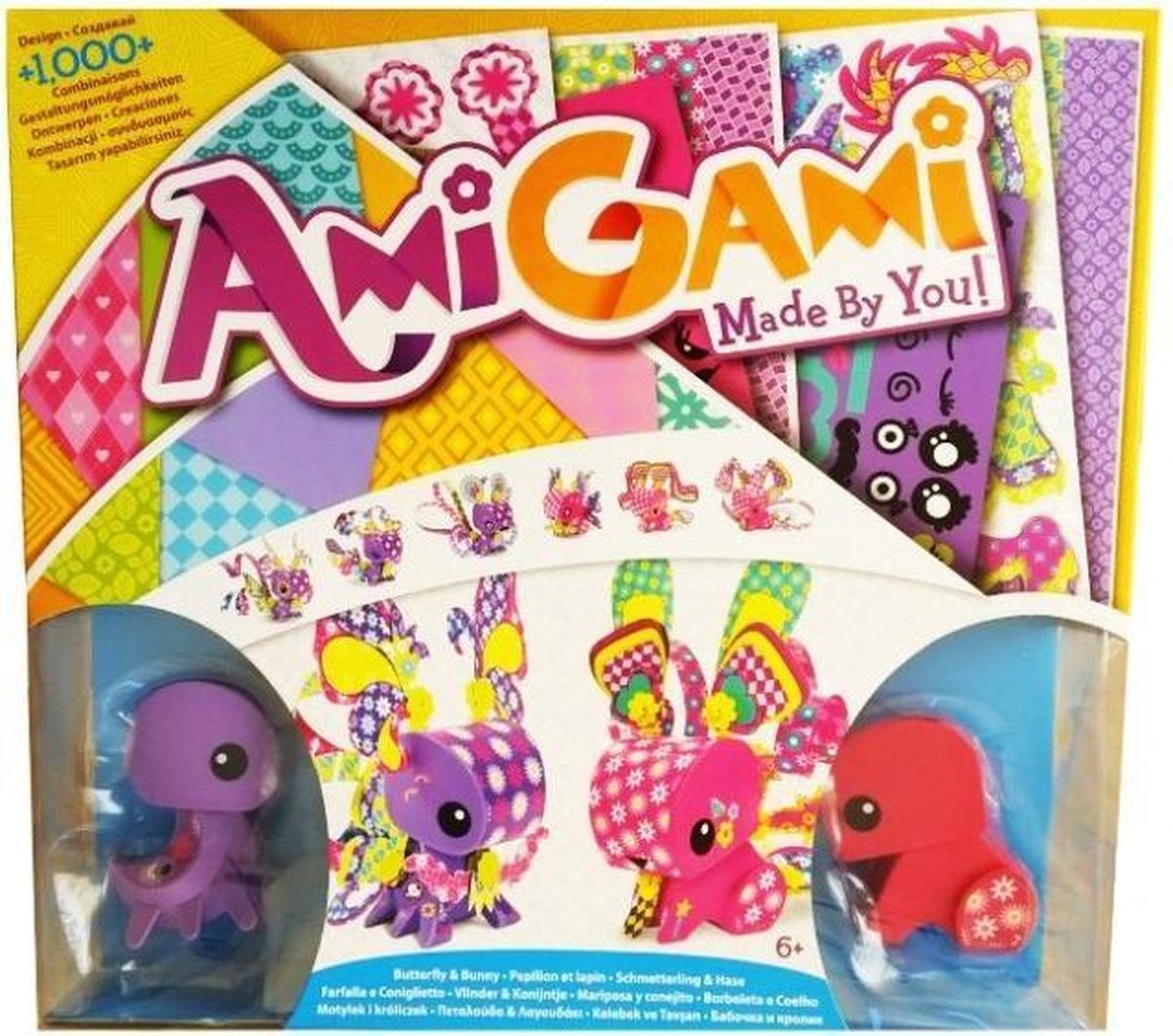 AmiGami is een geheel nieuwe manier om te spelen en je creativiteit te uiten! Maak het eenvoudig of wild, stapel ze of krul ze - het is helemaal aan jou Elk AmiGami-figuur is uniek omdat het door jou is gemaakt! Sets bevatten twee plastic AmiGami-dieren die kunnen worden aangepast met 60 verschillende kleurrijke AmiGami-papieronderdelen Inclusief 12 juwelpennen om AmiGami-papieronderdelen en 1 krultang in vorm-n-stijl te bevestigen