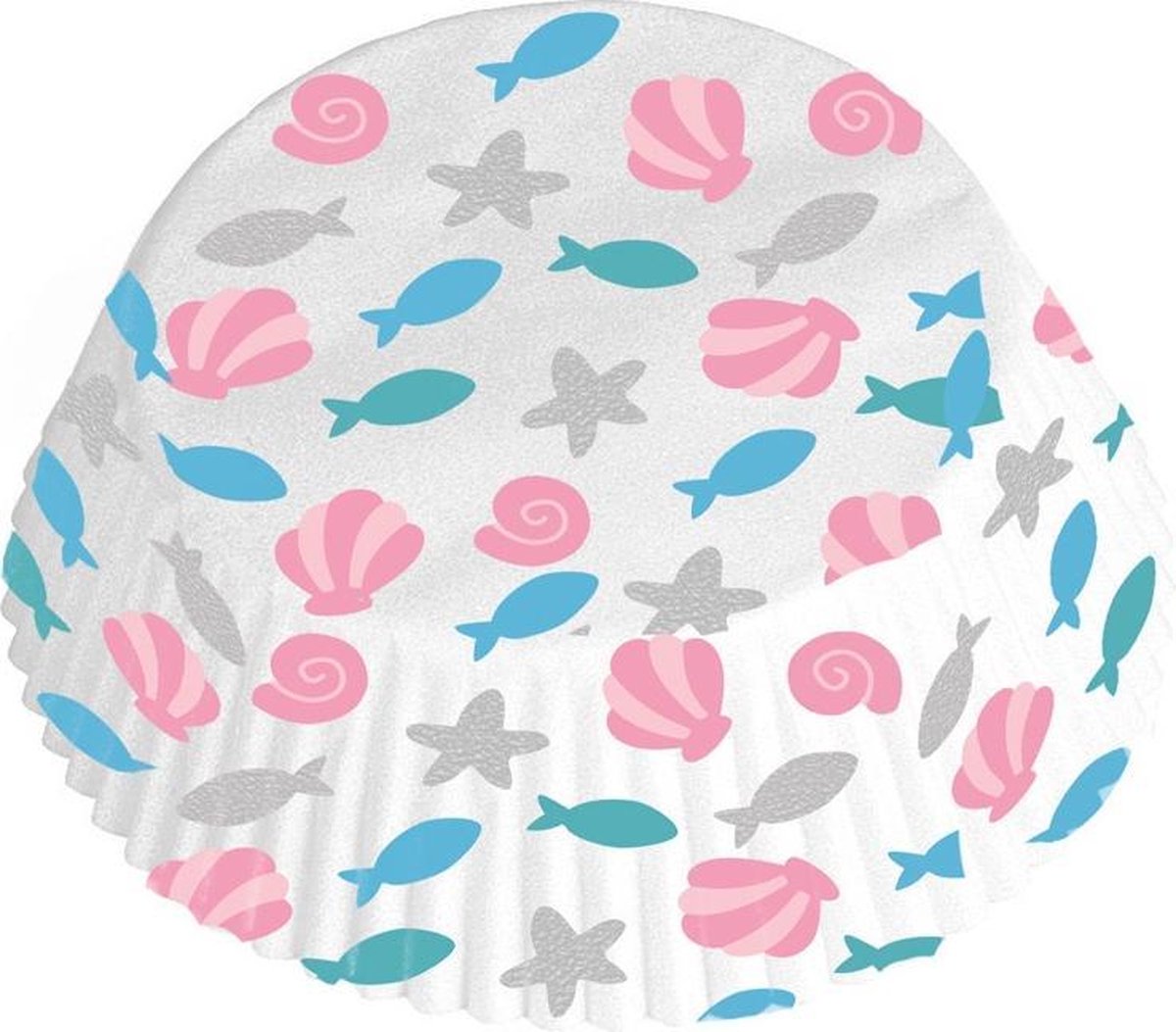 Amscan cupcakevormpjes zeemeermin Bak de lekkerste cupcakes in deze zeemeermin cupcakevormpjes! Specificaties: Kleur: roze/wit/blauw Geslacht: meisjes Materiaal: papier Afmetingen: 50 x 25 mm Inhoud: 48 Cupcakevormpjes